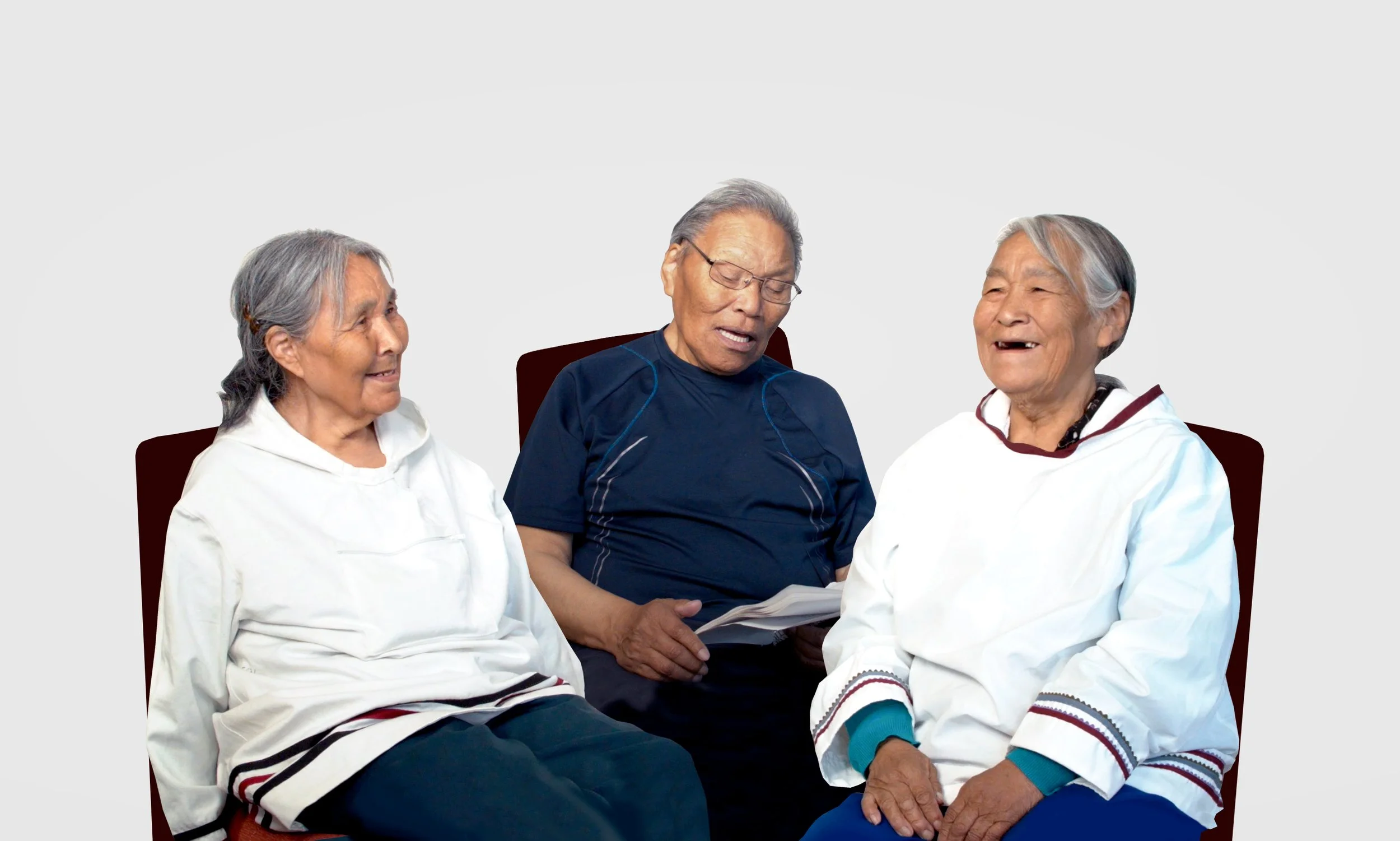 The songs were performed in Kinngait, Nunavut (Canada) by local unilingual Elders Masuriaq Qavianaqtuliaq, Novalinga Kinguatsiak, and Ujjualuk Etidloie. The project was conceptualized and hosted by Annie Petaulassie. All four Elders were born on the land and remember what life was like before the arrival of Qallunaat (“white people”).